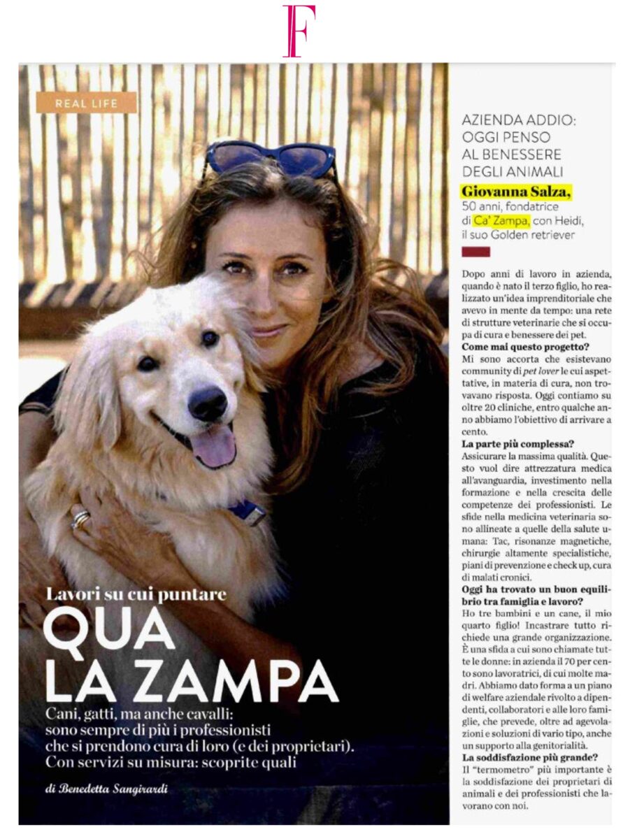 Azienda addio: oggi penso al benessere degli animali. Su F l’intervista al CEO Giovanna Salza